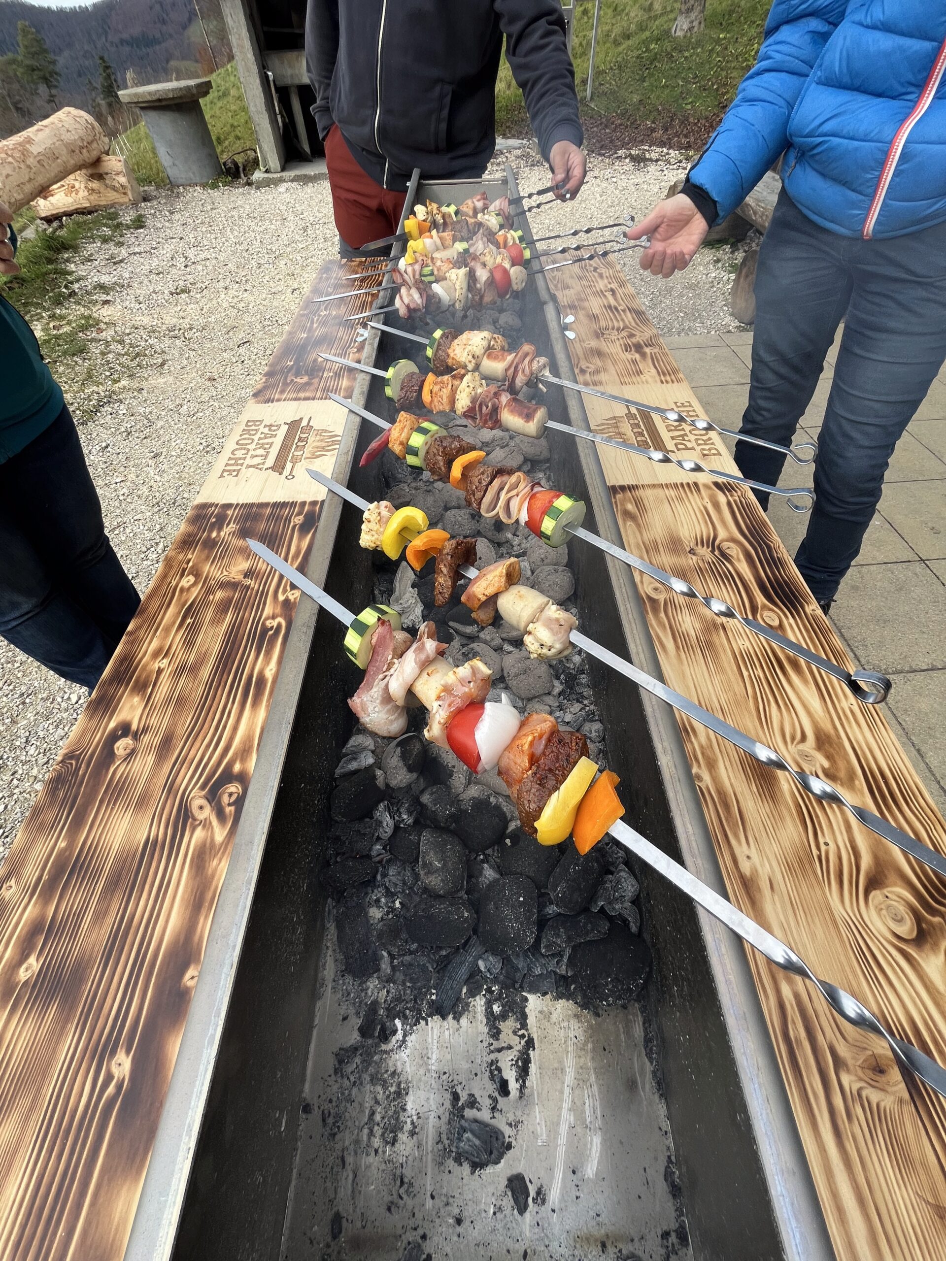 Choisissez vos ingrédients, enfilez-les sur nos brochettes inox de 60 cm et profitez d’une cuisson authentique au charbon. Nous fournissons le grill, les brochettes et les accessoires — vous apportez la bonne humeur ✨